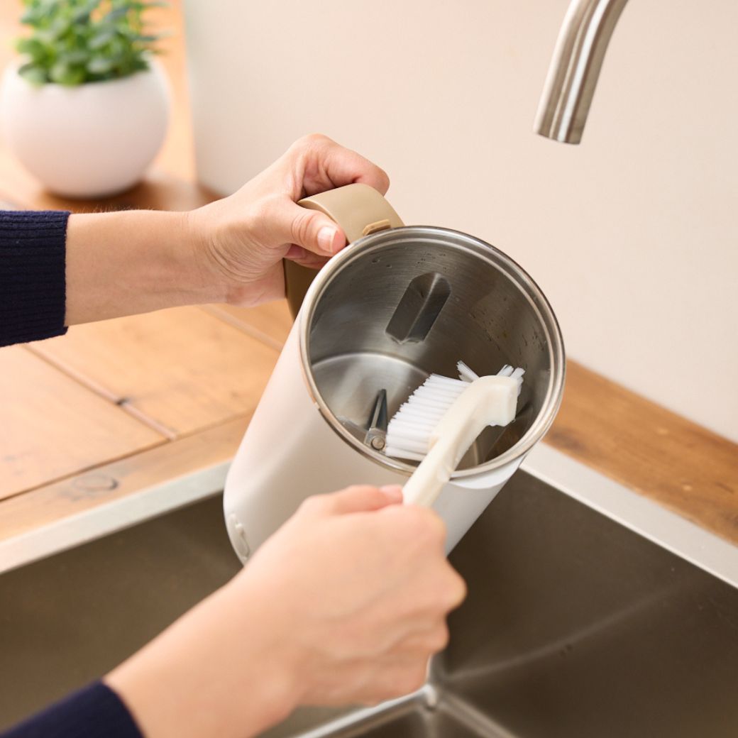 MAXラインまで水を入れて、JUICEモードに合わせてスタートすればブレンダー内部を綺麗に洗うことができます。また専用ブラシもついています。