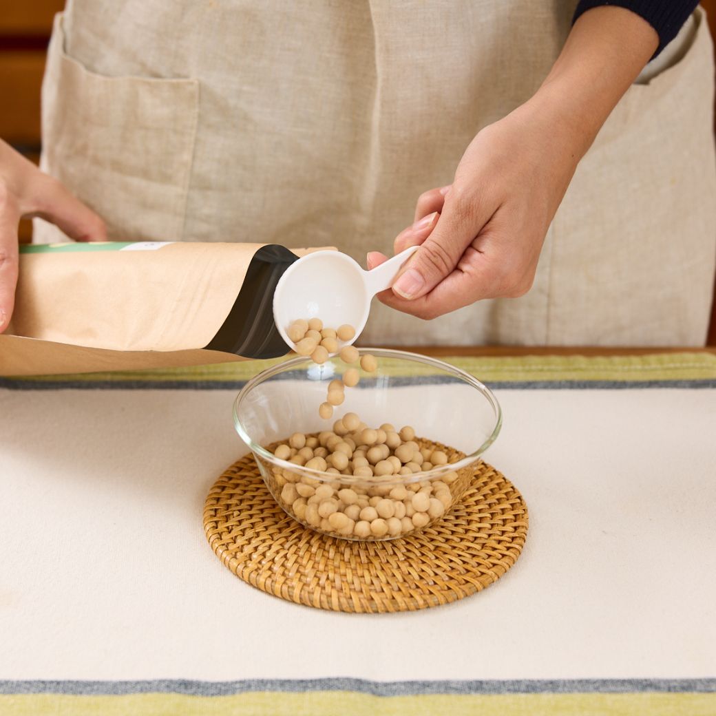 SOYMILでは、日本各地から厳選した国産在来品種大豆を味わってもらい、日本文化と深く根付いている在来品種大豆を広げていきたいとの思いでブランドを立ち上げております。市販の大豆でも作れないことはありませんが、弊社ではSOYMIL KITを前提とした計量方法で記載させていただきます。